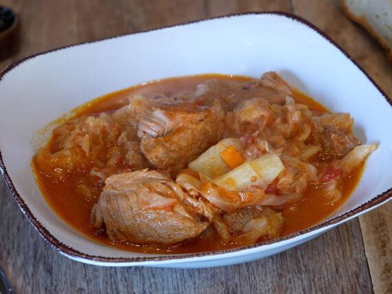 Συνταγή για μαμαδίστικο χοιρινό κατσαρόλας με λάχανο, τώρα που το λάχανο είναι στην εποχή του. Με σάλτσα ντομάτας και όλα τα μυστικά για το πιο πετυχημένο μεσημεριανό για όλη την οικογένεια από τον Παναγιώτη Παπαδάκη.