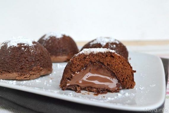 - Ρίξτε το μείγμα στα καλούπια,και αφού τελειώσετε με όλα, προσθέστε ένα κουταλάκι του γλυκού Nutella στο κέντρο του καθενός.