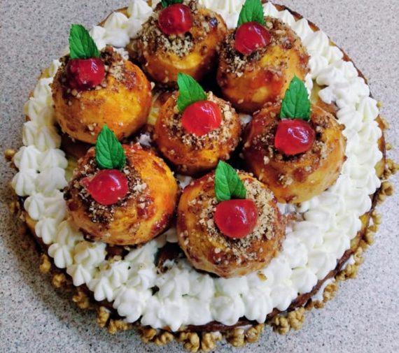 Μιλάμε φυσικά για τα ψητά μήλα γεμιστά με καρύδι, βερίκοκα, μέλι και χυμό πορτοκαλιού τα οποία θα τα βάλουμε πάνω από μία αφράτη, παραδοσιακή μηλόπιτα. Θα γαρνίρουμε την μηλόπιτα με απολαυστική σαντιγί και θα γλασάρουμε τα μήλα με μαρμελάδα φράουλα.
