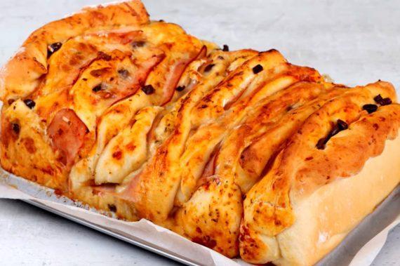 Φυσικά το τυρί που λιώνει θα απογειώσει την γεύση. Αυτό το Χριστουγεννιάτικο γεμιστό ψωμί θυμίζει πολύ την πίτσα στην γεύση εξαιτίας του τυριού, της σάλτσας και των αλλαντικών και σίγουρα θα ξετρελάνει μικρούς και μεγάλους. Και το καλύτερο από όλα; Γίνεται πανεύκολα χωρίς κόπο.