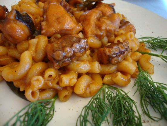 εκτέλεση καθαρίζουμε και πλένουμε καλά το χταποδάκι μας το βάζουμε σε ένα σουρωτήρι να φύγουν τα υγρά στην κατσαρόλα μας βάζουμε το λαδάκι και σοτάρουμε το κρεμμυδι στην συνέχεια ριχνουμε το χταπόδι και το αφήνουμε να βγάλει όλα του τα νερά σε δυνατή φωτιά!!!! όταν έχει εξατμιστεί αρκετό από το νεράκι ριχνουμε την ντομάτα μας και την δάφνη και το χαμηλώνουμε να βράσει δοκιμάζοντας πότε θα είναι μαλακό και τότε ριχνουμε αλατοπίπερο και και προσθέτουμε νεράκι ακόμα και μόλις πάρει βράση ριχνουμε το μακαρονάκι και το αφήνουμε να πάρει δυο βράσεις και το σβήνουμε το σκεπάζουμε με μια πετσετουλα και περιμένουμε να πιει όλα τα υγρά του!!! << προσοχή πριν ρίξετε το μακαρονάκι μεσα στην κατσαρόλα να υπάρχουν περίπου 2 ποτήρια σαλτσούλα>>