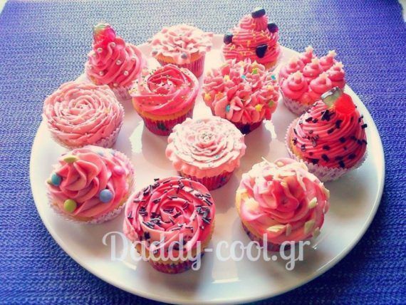 Cupcakes βανίλιας με βουτυρόκρεμα φράουλας! Τα κορίτσια σας στο κοριτσιστικό παρτυ τους θα τα λατρέψουν! Υλικά: 110 γρ. βούτυρο ανάλατο σε θερμοκρασία δωματίου 110 γρ ζάχαρη άχνη κοσκινισμένη 2 αυγά μέτρια προς μεγάλα σε θερμοκρασία δωματίου 1 κ.γλ. εκχύλισμα βανίλιας η 3 κάψουλες 110 γρ. φαρίνα κοσκινισμένη 1-2 κ.σ γάλα 12 χαρτάκια για cupcakes (όχι για μίνι cupkakes.να χωράνε ακριβώς στις θήκες τις φόρμας) Φόρμα για 12 cupcakes μέσα στη οποία θα τοποθετήσουμε τα χαρτάκια