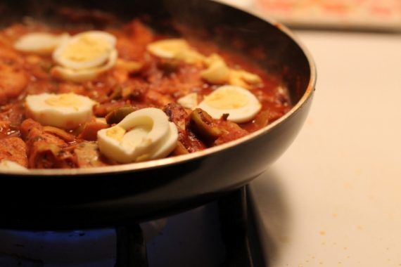 Αυγά σφιχτά σε πικάντικη σάλτσα ντομάτας