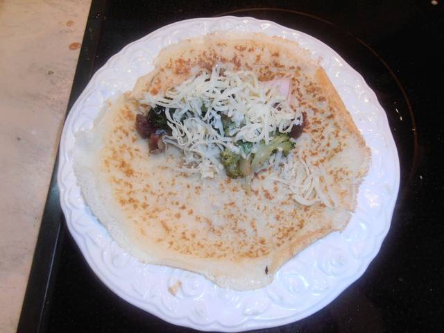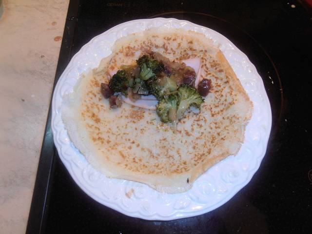 Όταν πια το μπρόκολο είναι έτοιμο, αδειάζουμε τη γέμιση σε ένα πιάτο, για να χρησιμοποιήσουμε το τηγάνι για να ετοιμάσουμε τις κρέπες.