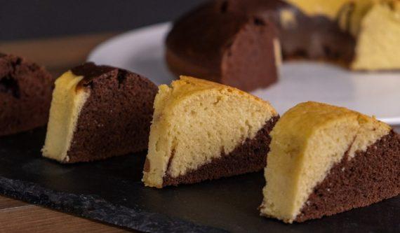 Η συνταγή είναι φυσικά του αγαπημένου μας Παναγιώτη Παπαδάκη. Μας το παρουσίασε μέσα από την επιτυχημένη του εκπομπή στο Youtube Live Kitchen και η αλήθεια είναι πως αυτό το δίχρωμο κέικ χωρίς μίξερ και έτοιμο σε 10 λεπτά, τρέλανε κόσμο!