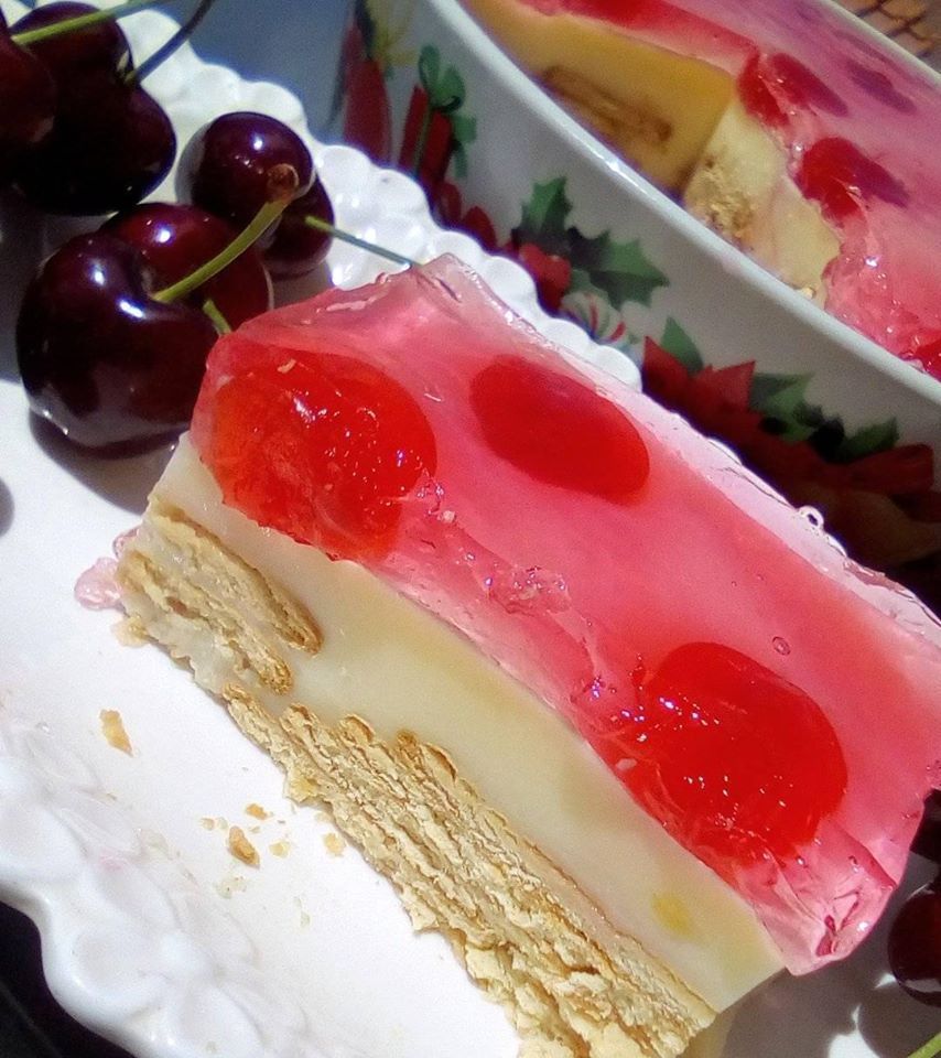 Αυτό το άκρως καλοκαιρινό γλυκάκι είναι ιδανικό ως επιδόρπιο στο Κυριακάτικο τραπέζι μας, για να συνοδεύσουμε το απογευματινό μας καφεδάκι άλλα και ότι πρέπει για τις βραδινές λιγούρες. Είναι τέλειο ακόμα και για τα παιδιά αφού περιέχει μπισκότα, ζελέ και κερασάκια που τα λατρεύουν.