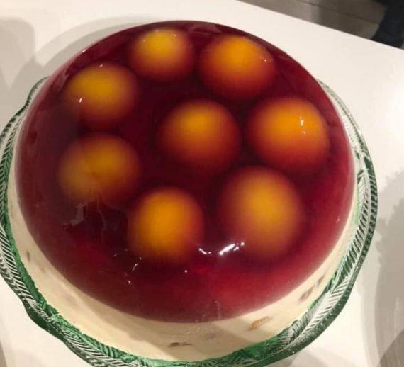 Εκτέλεση: Βάζουμε πρώτα 5 ποτηριά νερό με 2 φακελάκια κόκκινο ζελέ(κεράσι) Το αφήνουμε να κρυώσει καλά και το βάζουμε μέσα σε μια μεγάλο βαθύ μπολ στελλεστι.