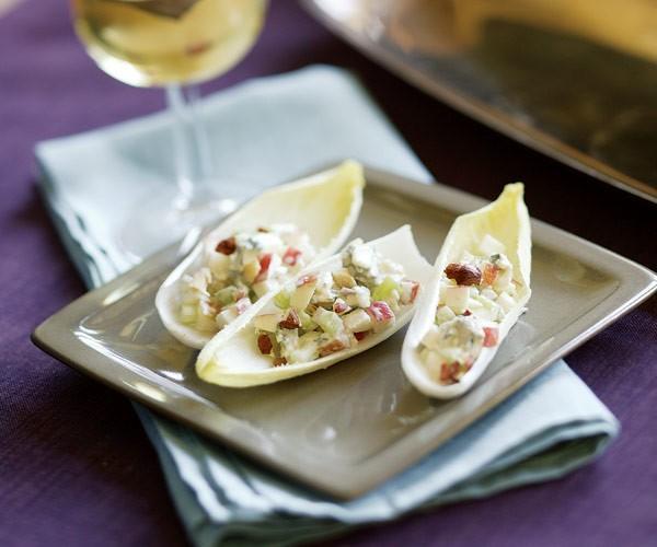 Υπέροχο και πρωτότυπο μεζεδάκι που γίνεται πανεύκολα. Κόβεις σε κυβάκια ένα πράσινο μήλο και blue cheese, χτυπάς ξηρούς καρπούς (καρύδια, αμύγδαλα) ώστε να γίνουν χοντρά κομμάτια, τα ανακατεύεις. Τα τοποθετείς με μικρό κουταλάκι μέσα σε ένα φυλλο αντιβ και ρίχνεις από πάνω μια σταγόνα μέλι.