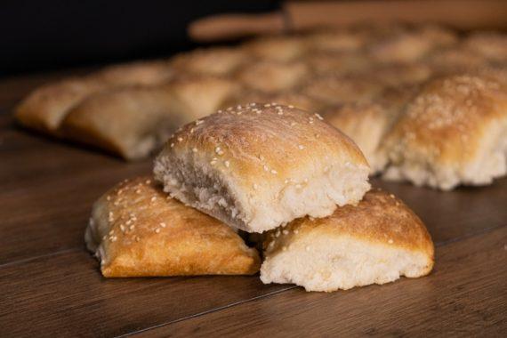 ENGLISH Ingredients 1 kg plain flour 600 g bottled water 7-9 g dry yeast 3 tsp salt 2 tbsp olive oil —————————- Water Sesame ——————————- 30 pieces