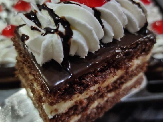 Βγάζουμε τις πάστες από το ψυγείο και τις διακοσμούμε με την σαντιγί, την οποία την έχουμε μεταφέρει σε ένα κορνέ και κερασάκια γλασέ που τα έχουμε κόψει στη μέση. Κόβουμε τις πάστες με ένα μαχαίρι και τις βάζουμε στο ψυγείο. Όταν παγώσουν καλά σερβίρουμε.