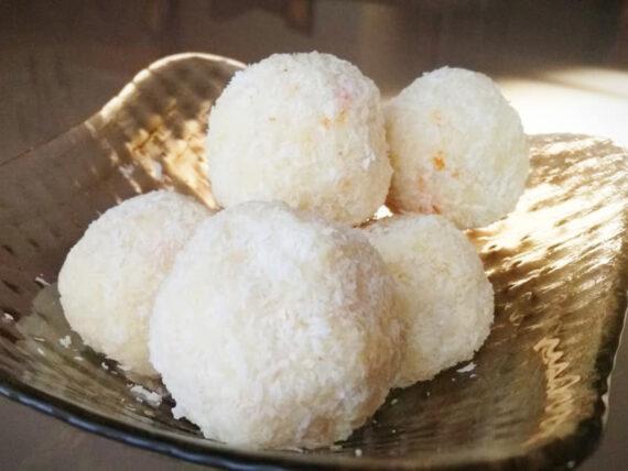 Συνταγή για εύκολες και αρωματικές τρούφες με λευκή σοκολάτα, πορτοκάλι και ινδοκάρυδο για κέρασμα, για τις υπογλυκαιμίες μας ή ακόμη και για να συνοδεύσουμε το καφεδάκι μας με μόλις 5 υλικά.