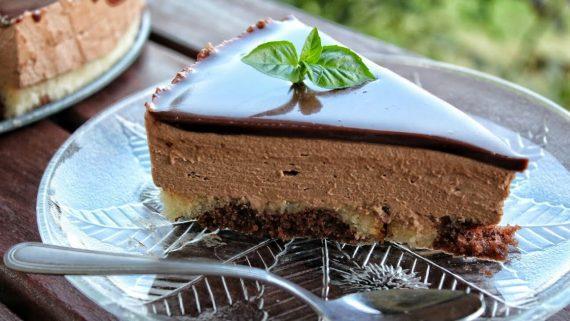 300γρ. κέικ (300gr. cake) 200ml σιρόπι (200ml syrup) 500ml κρέμα γάλακτος (500ml whipping cream) 300γρ. πραλίνα “Soudis” (300gr. “Soudis” praline 10γρ. ζελατίνη σε σκόνη (10gr. gelatin powder) 3 κ.σ. κρύο νερό (3 tbsp cold water) 125ml νερό (125ml water) 225γρ. ζάχαρη (225gr. sugar) 30γρ. κακάο (30gr. cocoa) 130ml κρέμα γάλακτος (130ml heavy cream)