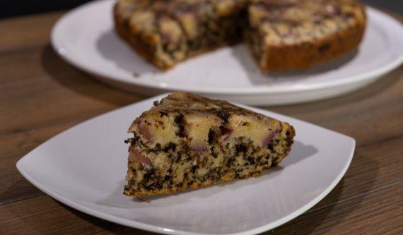 Ingredients 2 medium eggs 100 g milk 80 g melted butter 150 g sugar 200 g plain flour 100 g chocolate sprinkles 2 red apples 2 tbsp sugar 1/2.tsp cinnamon powder (2 vanilla) 2 tsp baking powder ———————————— 22 εκ / 22cm