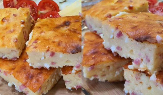 Υλικά για εύκολη πίτα χωρίς φύλλο με φέτα και ζαμπόν