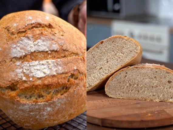 Εύκολη Συνταγή για Ψωμί χωρίς ζύμωμα. Συνταγή για ψωμί χωρίς ζύμωμα με αλεύρι ολικής άλεσης και αλεύρι για όλες τις χρήσεις, από τον Δημήτρη Μιχαηλίδη.