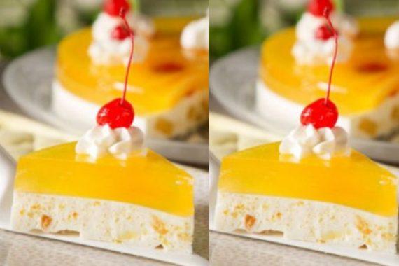 Απλώνετε το μείγμα πάνω από το ζελέ και το αφήνετε στο ψυγείο μέχρι να πήξει καλά. Τη σερβίρετε διακοσμημένη με ροζέτες σαντιγί και με κερασάκια μαρασκίνο ή άλλη διακόσμηση επιλογής σας.