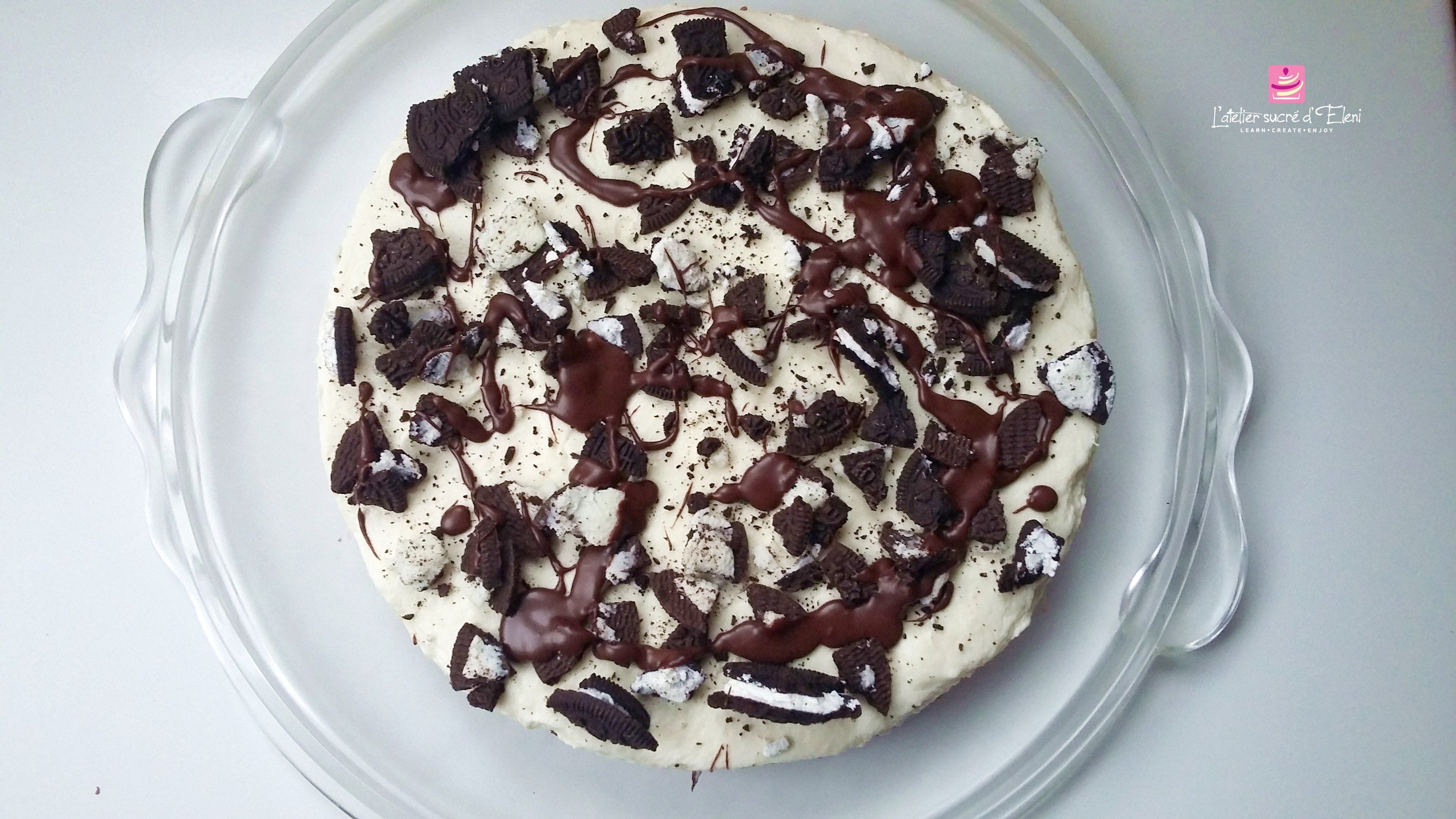Διακοσμουμε με μπισκότα ορεο και λιωμένη σοκολάτα αν μας αρέσει.