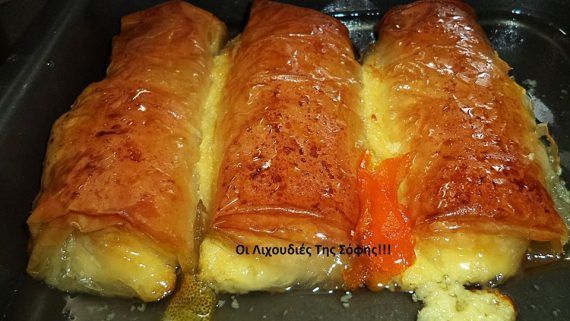 ”ΕΥΚΟΛΟ ΓΑΛΑΚΤΟΜΠΟΥΡΕΚΟ ΡΟΛΟ”!!! Για όσους δεν θέλουν να τρώνε μόνο…κρέμα όπως κι εγω!!! Φανταστική και πανεύκολη κρέμα,τυλιγμένη σε κριτσανιστό και μελωμένο φύλλο που παραμένει τραγανό και την επόμενη μέρα με το σωστό σιρόπι!!! Δοκιμάστε το και θα ξετρελλαθείτε!!! ΥΛΙΚΑ 200 γρ.βούτυρο αγελαδινό λιωμένο 1 πακέτο φύλλο κρούστας 1 λίτρο γάλα φρέσκο 4 αυγά σε θερμ.δωμ. 1 κούπα ζάχαρη όχι γεμάτη (200 γρ.) 1 κούπα σιμιγδάλι ψιλό όχι γεμάτη (150 γρ.) 1 κ.σ φρέσκο αγελαδινό βούτυρο (50 γρ.) 2 βανίλιες ΓΙΑ ΤΟ ΣΙΡΟΠΙ 1 κιλό ζαχαρη 600 γρ.νερό χυμό 1/2 λεμονιού 1 βανίλια φλόυδα πορτοκαλιού 1 ξύλο κανέλας ΕΚΤΕΛΕΣΗ -Χτυπάω τα αυγά με τη ζάχαρη 2-3 λεπτά και προσθέτω το σιμιγδάλι και το γάλα χτυπώντας για 1 λεπτό ακόμα. Αδειάζω το περιεχόμενο σε κατσαρόλα και ανακατεύοντας συνεχως βράζω μέχρι να δέσει η κρέμα.Όταν δέσει ρίχνω τις βανίλιες και το βούτυρο.Την αδειάζω σε ένα μπολ την σκεπάζω με μεμβράνη και την αφήνω να κρυώσει λίγο. Ανοίγω τα φύλλα μου και τα κόβω με μαχαίρι στη μέση. Παίρνω 2 φύλλα τη φορά βουτυρώνοντας ανάμεσα και από πάνω και βάζω από 1 κ.σ κρέμα στην άκρη του φύλλου.Γυρίζω τις 2 πλευρές προς τα μέσα και στη συνέχεια τυλίγω ρολό.Όταν φτάσω κάπου στη μέση του ρολού,βουτυρώνω ξανά και συνεχίζω να ρολάρω. Τοποθετώ τα ρολά μου σε βουτυρωμένο ταψάκι. Βγαίνουν 14 ατομικά γαλακτομπούρεκα. Βουτυρώνω με το υπόλοιπο βούτυρο την επιφάνεια απο τα ρολά και ψήνω στους 180 για 45 λεπτά περίπου μέχρι να ροδοκοκκινησουν καλά καλά. Εντωμεταξύ βράζω το σιρόπι 5-6 λεπτα να δέσει.Και εδώ είναι το μυστικο.Ενα αραιό σιρόπι θα μας ”παπαρώσει”το φύλλο και αυτό δεν το θέλουμε!! Μετα τα 6 λεπτά ρίχνω τη βανιλια και σιροπιάζω το καυτό γλυκό με το καυτό σιρόπι. Το σιρόπι δεν είναι πολύ,θα το ρουφήξει όλο! Παραμένει τραγανό και την επόμενη μέρα,αλλα΄εκτός ψυγείου! Αν περισέψει και την τρίτη μέρα (που δεν νομίζω) τότε το βάζω ψυγείο