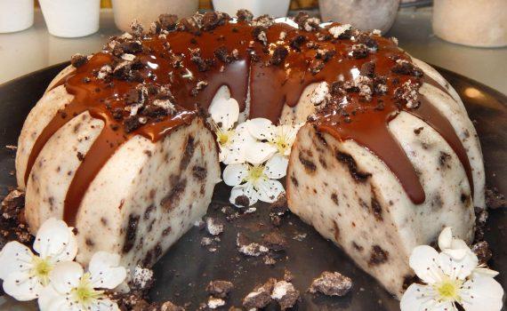 Αφού περάσουν οι 3-4 ώρες, ξεκολλάμε το γλυκό από την φόρμα μας με προσοχή και το αναποδογυρίζουμε σε μία πιατέλα. Σε μπεν μαρί ή στον φούρνο μικροκυμάτων λιώνουμε την κουβερτούρα.