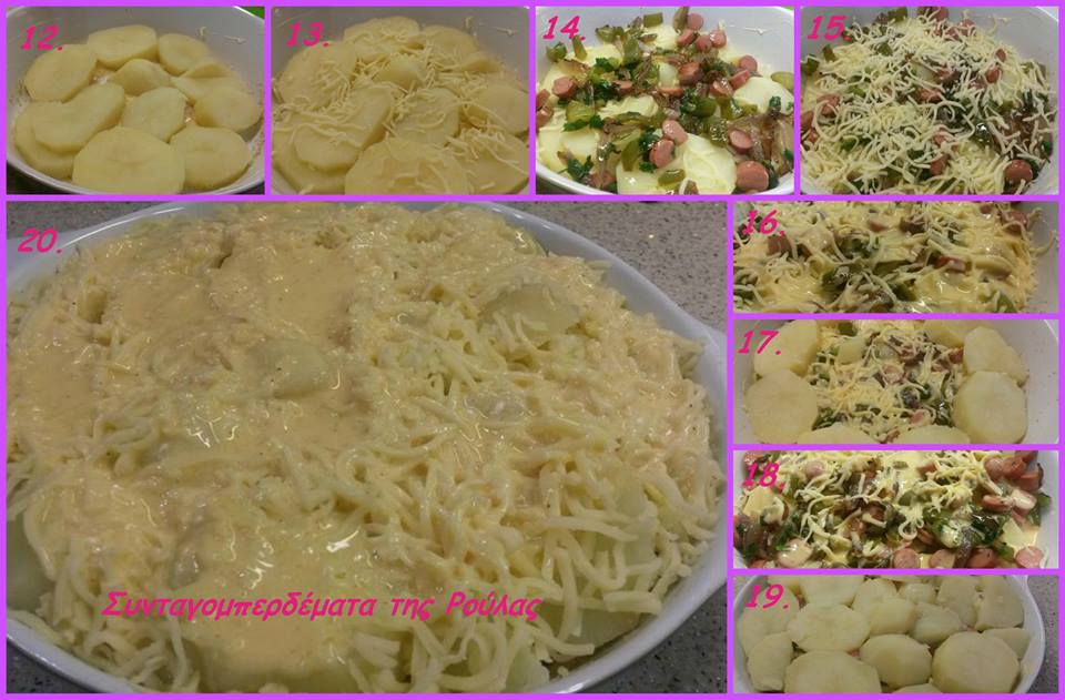 ΣΟΥΦΛΕ ΠΑΤΑΤΑΣ ΕΥΚΟΛΟ !!! Γυρνάτε το μεσημέρι σπίτι από τη δουλειά και δεν έχετε μαγειρέψει από την προηγούμενη μέρα ? Εδώ έρχεται αυτή η υπέροχη συνταγή να σας… ‘’λύσει τα χέρια’’ και να σας εύχονται… ‘’γεια στα χέρια’’ !!! Μια τέτοια μέρα την εμπνεύστηκα αυτή τη συνταγή και η οικογένεια μου αλλά και όσοι τη δοκίμασαν τη λάτρεψαν !!! Με απλά υλικά, εύκολο αλλά γευστικότατο σουφλέ πατάτας !!! Υλικά : – 1 κιλό πατάτες – 200 γρ. τυρί gouda τριμμένο – 1 μέτρια πράσινη πιπεριά (κομμένη σε μικρά κομμάτια) – 1 μέτριο ξερό κρεμμύδι (κομμένο σε φέτες) – 2 κ.σ. μαϊντανό ψιλοκομμένο – 150 γρ. λουκάνικα τύπου Φρανκφούρτης (κομμένα σε φετούλες) *μπορείτε να αντικαταστήσετε αυτό το υλικό με μπέικον, ζαμπόν ή γαλοπούλα – 150 γρ. κρέμα γάλακτος μαγειρικής – 4 αυγά – αλάτι, πιπέρι, μοσχοκάρυδο – λίγη φρυγανιά τριμμένη Εκτέλεση : – Καθαρίζουμε, πλένουμε, κόβουμε τις πατάτες σε στρογγυλές φέτες (όχι πολύ λεπτές. – Τοποθετούμε σε μια κατσαρόλα και σκεπάζουμε με νερό. Όταν ξεκινήσει ο βρασμός, προσθέτουμε αλάτι και βράζουμε για 5 λεπτά. – Σουρώνουμε και ξεπλένουμε με λίγο κρύο νερό. – Σε ένα τηγάνι προσθέτουμε λίγο ελαιόλαδο και τσιγαρίζουμε την πιπεριά, το κρεμμύδι και το λουκάνικο και στο τέλος προσθέτουμε και το μαϊντανό. – Σε ένα μπολ προσθέτουμε τα αυγά, την κρέμα γάλακτος, το μοσχοκάρυδο και αλατοπίπερο και ανακατεύουμε με σύρμα να ομογενοποιηθεί το μείγμα. – Βουτυρώνουμε ένα πυρίμαχο σκεύος (εγώ χρησιμοποίησα στρογγυλό με διάμετρο 23 εκ.), πασπαλίζουμε με φρυγανιά και ρίχνουμε στον πάτο του 2 κ.σ. από το μείγμα αυγού. – Ξεκινάμε το στήσιμο του σουφλέ με την εξής σειρά : πατάτες – τυρί – μείγμα με λουκάνικα – τυρί – μείγμα αυγού. – Επαναλαμβάνουμε τη διαδικασία και τελειώνουμε με πατάτες τις οποίες πασπαλίζουμε με τυρί και περιχύνουμε με το υπόλοιπο μείγμα αυγού. – Ψήνουμε σε προθερμασμένο φούρνο, στους 180 βαθμούς, για 25-30 λεπτά περίπου και μέχρι να πάρει χρυσαφένιο χρώμα η επιφάνεια του σουφλέ ! ‘’Γεια στα χέρια σας’’ !