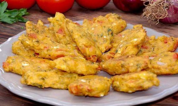 Ingredients -4 tomatoes -1 onion -A little of parsley -Α little of oregano -a little of salt -5 spearmint leaves -125 gr Greek feta cheese -2 tbsp yoghurt -250 gr flour -400 ml olive oil – 1 egg