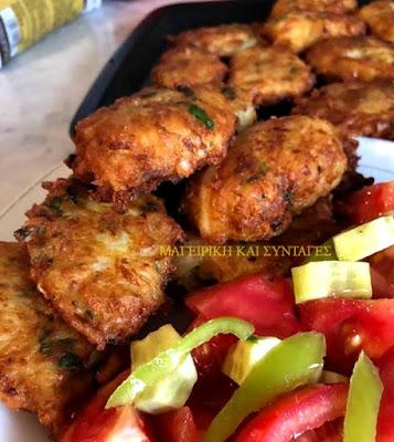 Βουτάμε τα κουτάλια στο νερό κάθε φορά και πέρνουμε με το ένα ποσότητα από το μείγμα το πάμε στο άλλο κουτάλι δίνοντας σχήμα και μετά αμέσως το ρίχνουμε προσεκτικά στο τηγάνι. Αν σας δυσκολεύει μπορείτε να βρέχετε τα χέρια σας κάθε φορά και να τα ετοιμάσετε με τα χέρια πλάθοντας αλλά με την μέθοδο κουταλιών γίνονται πολύ ωραίοι . Οταν τις βάλουμε στο τηγάνι δεν τους γυρναμε αλλά περιμένουμε 3 λεπτάκια περίπου να τηγανισθούν από κάτω και μετά με 2 πιρούνια τους γυρνάμε να πάρουν χρώμα .