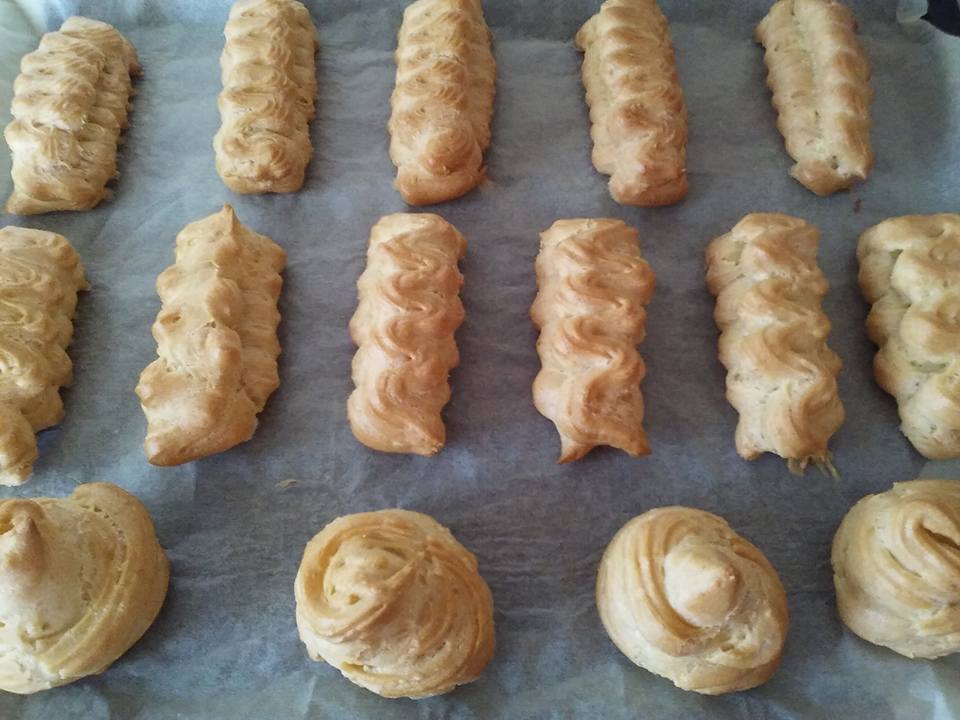 ΕΚΛΕΡ η ΣΟΥ; ΓΕΜΙΣΤΑ ΜΕ ΚΡΕΜΑ ΛΕΥΚΗΣ ΣΟΚΟΛΑΤΑΣ!!!! Όπως και να τα πείτε είναι Τέλεια!! ΥΛΙΚΑ: Ζύμη: 360γρ αλεύρι για όλες τής χρήσεις 600ml νερό 6 αυγά 160γρ βούτυρο Βιταμ Μισό κουταλάκι του γλυκού αλάτι Μιάμιση κουταλιά τής σούπας ζάχαρη Γέμιση: 1λίτρο γάλα(μισό νερό, μισό εβαπορέ) 1σοκολάτα κουβερτούρα λευκή 8κουταλιές τής σούπας ζάχαρη 6κουταλιές τής σούπας κορν φλαουερ ΤΡΟΠΟΣ ΠΑΡΑΣΚΕΥΗΣ: Ζεσταίνουμε σε μία κατσαρόλα το νερό με το αλάτι,την ζάχαρη και το βούτυρο. Αφήνουμε να πάρει μία βράση και προσθέτουμε σιγά σιγά το αλεύρι μέχρι να φτιάξουμε ένα εύπλαστο μαλακό ζυμάρι ανακατεύοντας συνεχώς με σύρμα η κουτάλα σε χαμηλή φωτιά. Αποσύρουμε απο την φωτιά και αφήνουμε για είκοσι λεπτά να κρυώσει.Στην συνέχεια αφού κρυώσει η ζύμη την βάζουμε στο μίξερ και προσθέτουμε ένα ένα τα αυγά. Χτυπάμε στο μίξερ για πέντε λεπτά να ομογενοποιηθουν και είναι έτοιμη η ζύμη!Πάρτε ένα κορνε και κάντε στρογγυλά η μακροστενα σχέδια σε αντικολητικο χαρτί και ψήστε για μισή ώρα στους 190 βαθμούς σε αέρα σε προθερμασμένο φούρνο.Μόλις είναι έτοιμα και έχουν πάρει χρώμα αλλάξτε την θερμοκρασία του φούρνου στους 110 βαθμούς για δεκαπέντε λεπτά να στεγνώσουν εσωτερικά! Κρέμα λευκής σοκολάτας:Σε μια κατσαρόλα ζεσταίνουμε το γάλα με την ζάχαρη και την λευκή σοκολάτα.Διαλύουμε το κορν φλαουερ σε ένα φλυτζανακι με λίγο νερό και το ρίχνουμε στο γάλα.Ανακατεύουμε συνεχώς σε χαμηλή φωτιά μέχρι να πήξει! Αφήνουμε για μία ώρα στο ψυγείο να παγώσει και γεμίζουμε τα εκλερ.Κόβουμε στην μέση γεμίζουμε με την κρέμα και είναι τέλεια! Αν θέλετε μπορείτε να βάλετε και φρούτα εποχής απο πάνω η ζάχαρη άχνη.Η ακόμη και γλασο ζάχαρης ανακατεύοντας σε ένα φλυτζανακι του καφέ άχνη ζάχαρη 5κουταλιές τής σούπας και μιάμιση νερό. Καλή σάς επιτυχία!