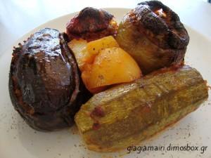 3 πιπεριές 3 κολοκυθάκια 3 μελτζάνες 6 ντομάτες