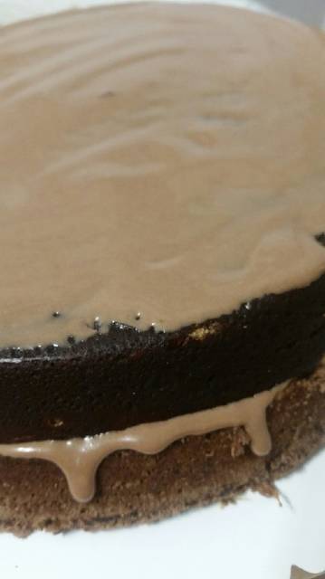 8. Με την γκανάς (γλάσο σοκολάτας) γλασάρουμε την τούρτα μας ομοιόμορφα φροντίζοντας να καλυφθούν καλά όλα τα σημεία.