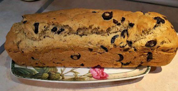 Ενάμιση ποτήρι χλιαρό νερό Μια ξερή μαγιά σακουλάκι τη διέλυσα μέσα. Πρόσθεσα ένα φλιτζάνι διπλού ελληνικού ελαιόλαδο και τις ελιές σε ροδέλες μεγάλες και ρίγανη. Άρχισα να ρίχνω αλεύρι με αλάτι μαζί . Αλεύρι όσο χρειαστείς να γίνει μια μαλακή ζύμη. Λάδωσα μια μακρόστενη φόρμα έβαλα τη ζύμη μέσα αφίσα κάνα μισάωρο και έψησα σε αντιστάσεις στους 180 μέχρι να ψηθεί καλά και από μέσα.