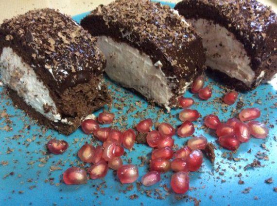 Αφηνω να κρυωσει και μετα το γεμιζω με την σαντιγυ ,το διπλωνω ,και αν θελω το πασαλειβω με μερεντα Το αφηνω στο ψυγειο για τρεις περ ωρες να παγωσει Και μετα το καταβροχθιζω F for Food