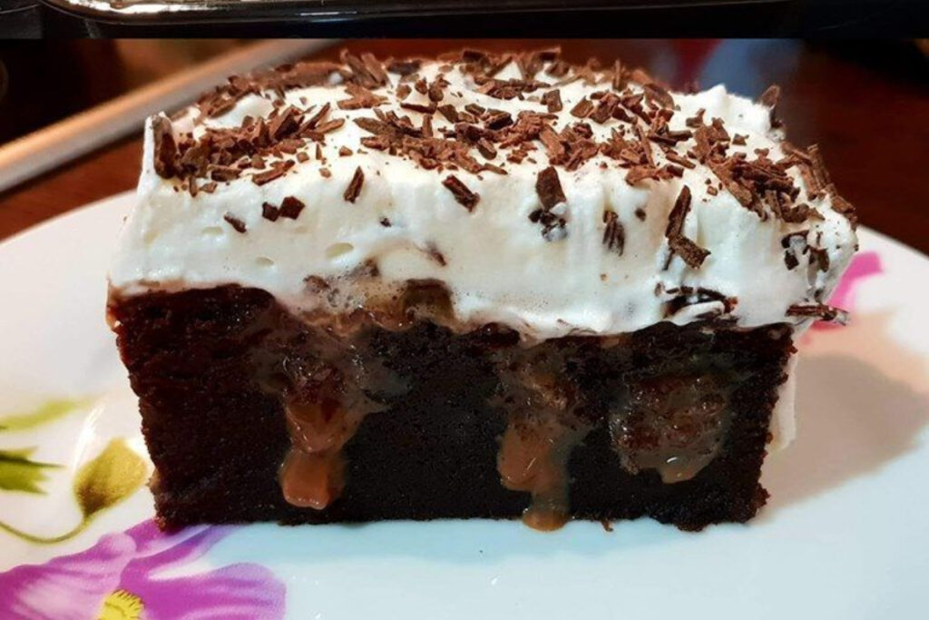 Σοκολατένιο κέικ σιροπιαστό με ζαχαρούχο γάλα.