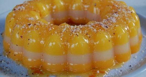 Στρώνουμε και την κρέμα λεμονιού στη φόρμα και κάνουμε την ίδια διαδικασία με το χυμό από τα μανταρίνια. Αδειάζουμε και την κρέμα μανταρινιού στη φόρμα και αφήνουμε να κρυώσει.