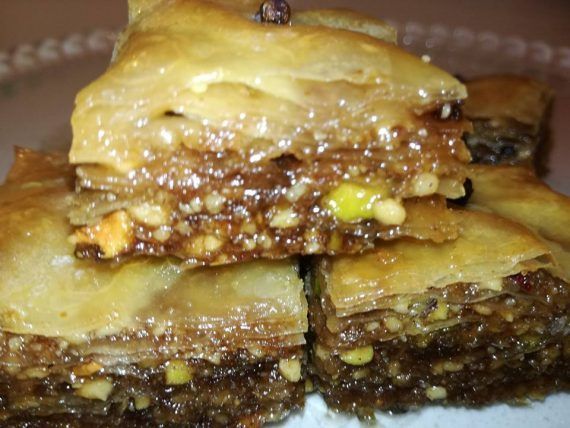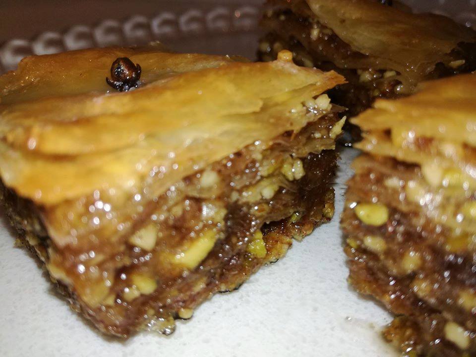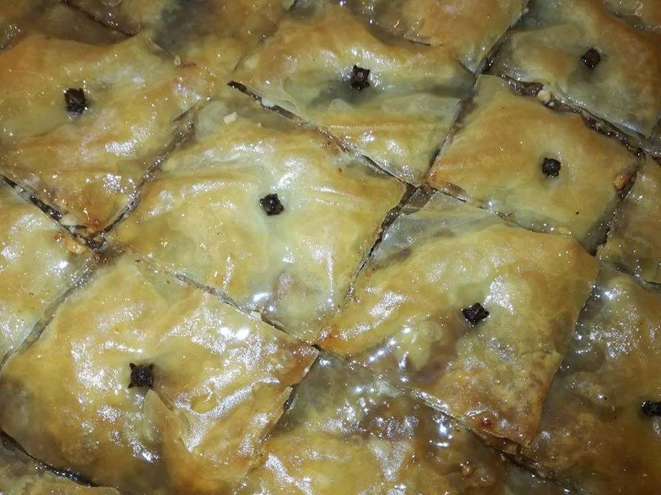 Μμμμμμμ!!!!! Ένας μπακλαβάς όνειρο που λιώνει στο στόμα. Θα σας μείνει αξέχαστος… (Η βασική συνταγή ανήκει στην κυρία Παναγιώτα από το Συκούριο) ΥΛΙΚΑ • 1 κούπα ελαιόλαδο • 1/2 κούπα τριμμένη φρυγανιά • 1/2 κούπα πούδρα αμυγδάλου • 1/2 κούπα αμύγδαλα ασπρισμένα και χοντροκομμένα • 1/2 κούπα φιστίκια Αιγίνης χοντροκομμένα • 3/4 κούπα καρύδια χοντροκομμένα • 3/4 κούπα μαύρη ζάχαρη • 1 κ.σ. κανέλλα • 1 κ.γλ. μοσχοκάρυδο • Γαρύφαλλα ολόκληρα • 2 βανίλιες • 1 πακέτο φύλλο κρούστας Για το σιρόπι • 2 κούπες ζάχαρη • 1 και 2/3 κούπες νερό • Φλούδα από μισό μανταρίνι • Μερικές σταγόνες χυμό μανταρίνι ΕΚΤΕΛΕΣΗ • Σε ένα μπολ ανακατεύουμε όλα τα υλικά εκτός από τα γαρύφαλλα, τις βανίλιες και το φύλλο κρούστας. • Κόβουμε τα φύλλα κρούστας στη μέση. • Λαδώνουμε ένα πυρέξ με διαστάσεις 35×22 cm.(είναι σχεδόν όσο το μισό φύλλο κρούστας). • Τοποθετούμε τρία μισά φύλλα κρούστας το ένα πάνω στο άλλο και το καθένα το αλείφουμε με ελαιόλαδο. • Στο τέταρτο φύλλο θα απλώσουμε γέμιση, όσο χωράει στη χούφτα μας. • Συνεχίζουμε εναλλάξ τα φύλλα. Το ένα το αλείφουμε με ελαιόλαδο και στο άλλο βάζουμε γέμιση. Τα τρία τελευταία φύλλα τα αλείφουμε με ελαιόλαδο. • Χαράζουμε το μπακλαβά και καρφώνουμε τα γαρύφαλλα. • Ψήνουμε σε προθερμασμένο φούρνο στους 180º C για 30-40 λεπτά ή μέχρι να ροδίσει ο μπακλαβάς. • Μόλις τον βγάλουμε τον πασπαλίζουμε με τις βανίλιες και όπως είναι ζεστός τον περιχύνουμε σιγά σιγά με το κρύο σιρόπι ώστε να προλάβει να το απορροφήσει. Για το σιρόπι • Βάζουμε όλα τα υλικά μαζί και τα αφήνουμε να βράσουν για 1-2 λεπτά. • Αφήνουμε το σιρόπι να κρυώσει.