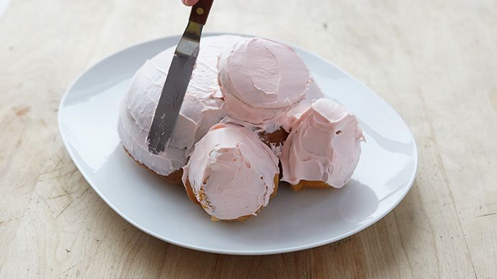 (Για συνταγές βουτυρόκρεμας πατήστε εδώ) στο κέικ. Παγώστε το κέικ 30 έως 45 λεπτά.