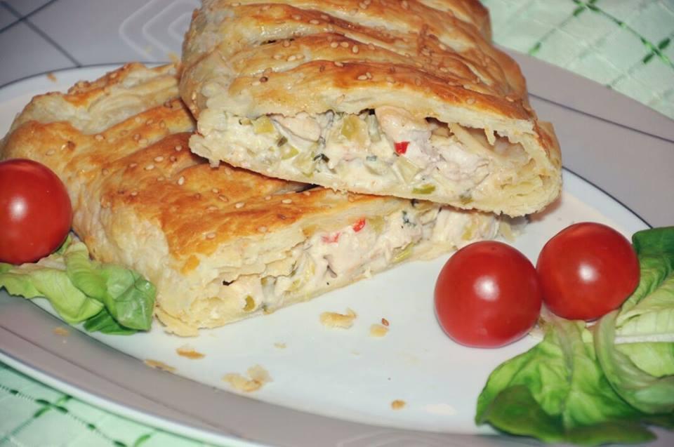 Ζουμερό στρουντελ με κοτόπουλο και κρεμ φρες