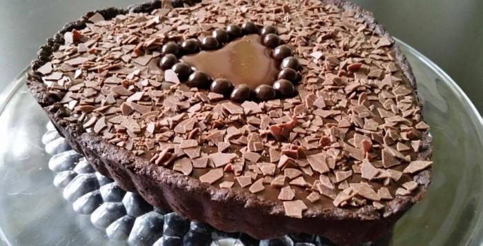 Ανακατεύουμε καλά μέχρι να λιώσει. Τέλος την ρίχνουμε επάνω από την καραμέλα. Η τάρτα είναι έτοιμη. Την βάζουμε στο ψυγείο και μετά από 2-3 ώρες μπορούμε να την κόψουμε.