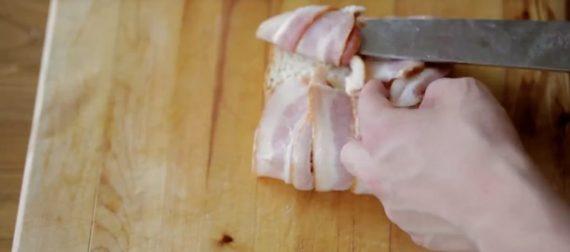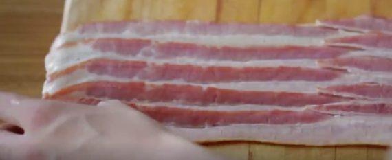 Βάλτε 5 ακόμη λωρίδες μπέικον σε σειρά περιστρεφόμενες 90 μοίρες από την πρώτη σειρά μπέικον.