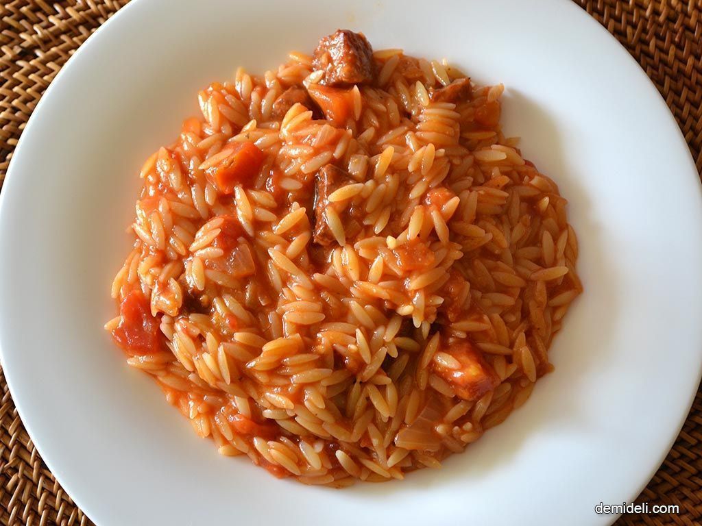 Κυριακή-Κριθαρότο με πικάντικο λουκάνικο