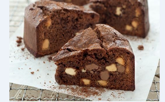 Σοκολατένιο κέικ με ζαχαρούχο γάλα και σταγόνες σοκολάτας