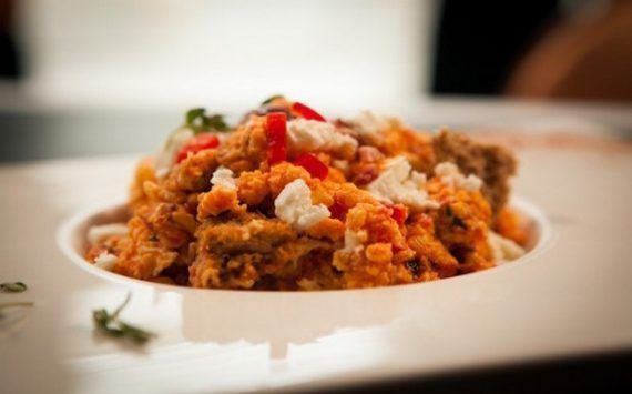 Δευτέρα-Στραπατσάδα με σύγκλινο, φέτα, πιπεριά και παξιμαδάκια