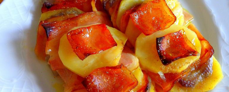 Πέμπτη- ΠΑΤΑΤΕΣ μέ ΜΠΕΙΚΟΝ καί ΚΡΕΜΜΥΔΙΑ στό ΦΟΥΡΝΟ