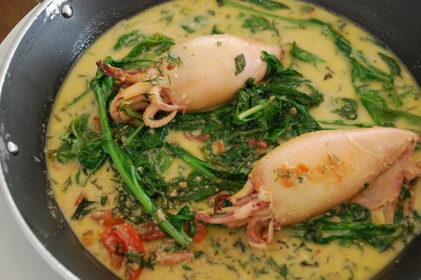 Σάββατο- Καλαμαράκια λεμονάτα με σπανάκι και χόρτα
