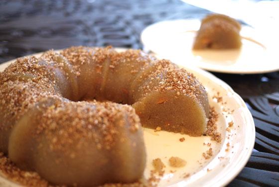 Νηστίσιμος Χαλβάς σιμιγδαλένιος με καρύδι και σάλτσα από ταχίνι και μέλι