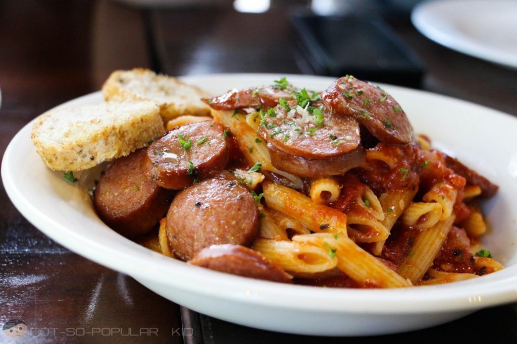 Δευτέρα- Ζυμαρικά πέννες με λουκάνικο, μελιτζάνες και φέτα