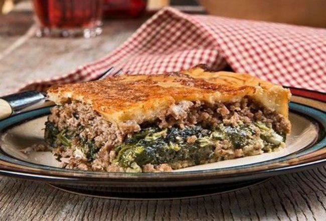 Πίτα με σπανάκι και κίμα με χωριατίκο φύλλο