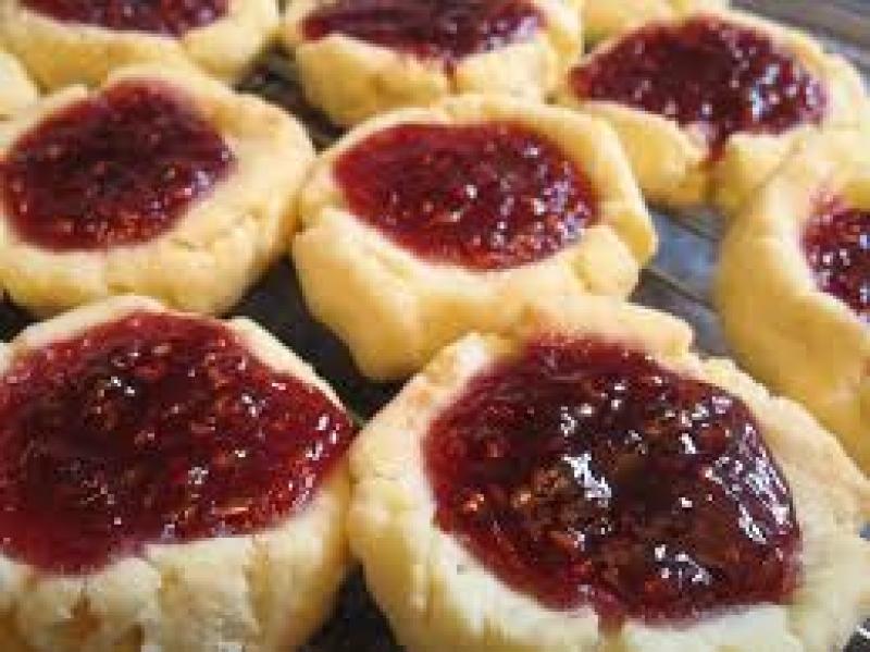 Πλάθουμε τα στρόγγυλα μπισκότακάνουμε μία μπαλίτσα μεγέθους καρυδιού, που την πατάμε λίγο να πλατύνει και κάνουμε με το δάκτυλό μας μία λακκουβίτσα στο κέντρο τους – όπου θα βάλουμε τη σοκολατένια επικάλυψη.