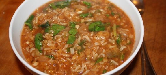 Βάζουμε σε μια κατσαρόλα ελαιόλαδο σε μέτρια φωτιά. Προσθέτουμε τα κρεμμύδια και το σκόρδο και ανακατεύουμε για 2 λεπτά. Προσθέτουμε τις φακές, τα καρότα και το ρύζι. Προσθέτουμε τα μπαχαρικά, τις ντομάτες και τον ζωμό. Σιγοβράζουμε για 40 λεπτά. Αποσύρουμε από τη φωτιά και προσθέτουμε το ξύδι. Το φακόρυζο σούπα είναι έτοιμο!