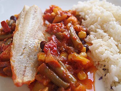 Φιλέτο ψαριού (γλώσσα, μπακαλιάρο, κοκκινόψαρο κοκ): 700 γρ. Μεξικάνικα λαχανικά: 750 γρ. (υπάρχουν στα σούπερ μάρκετ) Ελαιόλαδο: 3 κουταλιές Αλάτι, άσπρο πιπέρι: όσο σας αρέσει Ψιλοκομμένη πιπεριά τσίλι: 1 ή περισσότερες αν σας αρέσουν Ψιλοκομμένο κρεμμύδι: 1 μικρό Ψιλοκομμένο σκόρδο: 1 σκελίδα Ξεφλουδισμένες και ψιλοκομμένες ντομάτες: 3 μέτριες
