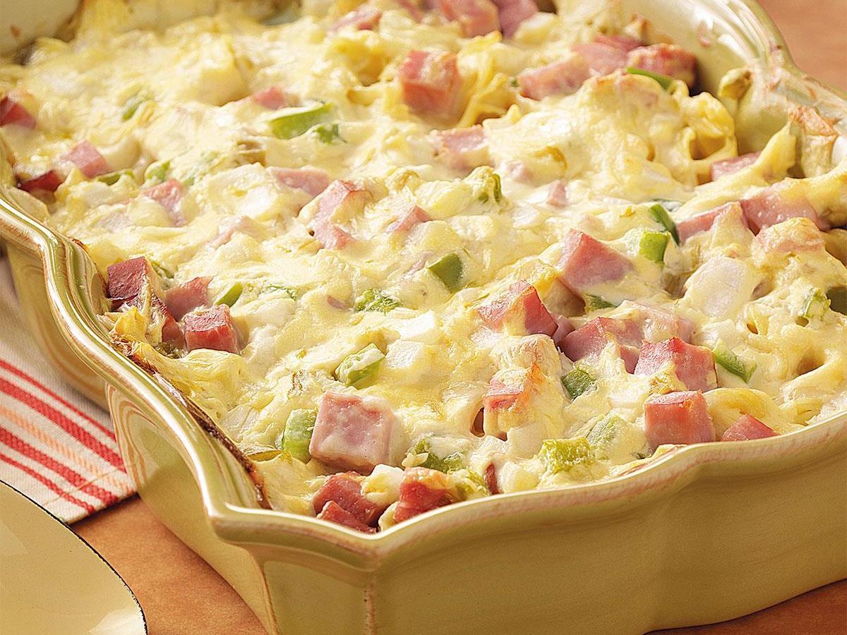 500γρ. μακαρόνια χοντρά για παστίτσιο ή πέννες 200γρ. ζαμπόν βραστό, ψιλοκομμένο 200γρ. κεφαλογραβιέρα, τριμμένη 200γρ. κασέρι τριμμένο 200γρ. παρμεζάνα, τριμμένη 1 κεσεδάκι γιαούρτι με χαμηλά λιπαρά 1 μικρή πράσινη πιπεριά ψιλοκομένη 4 αβγά αλάτι – πιπέρι